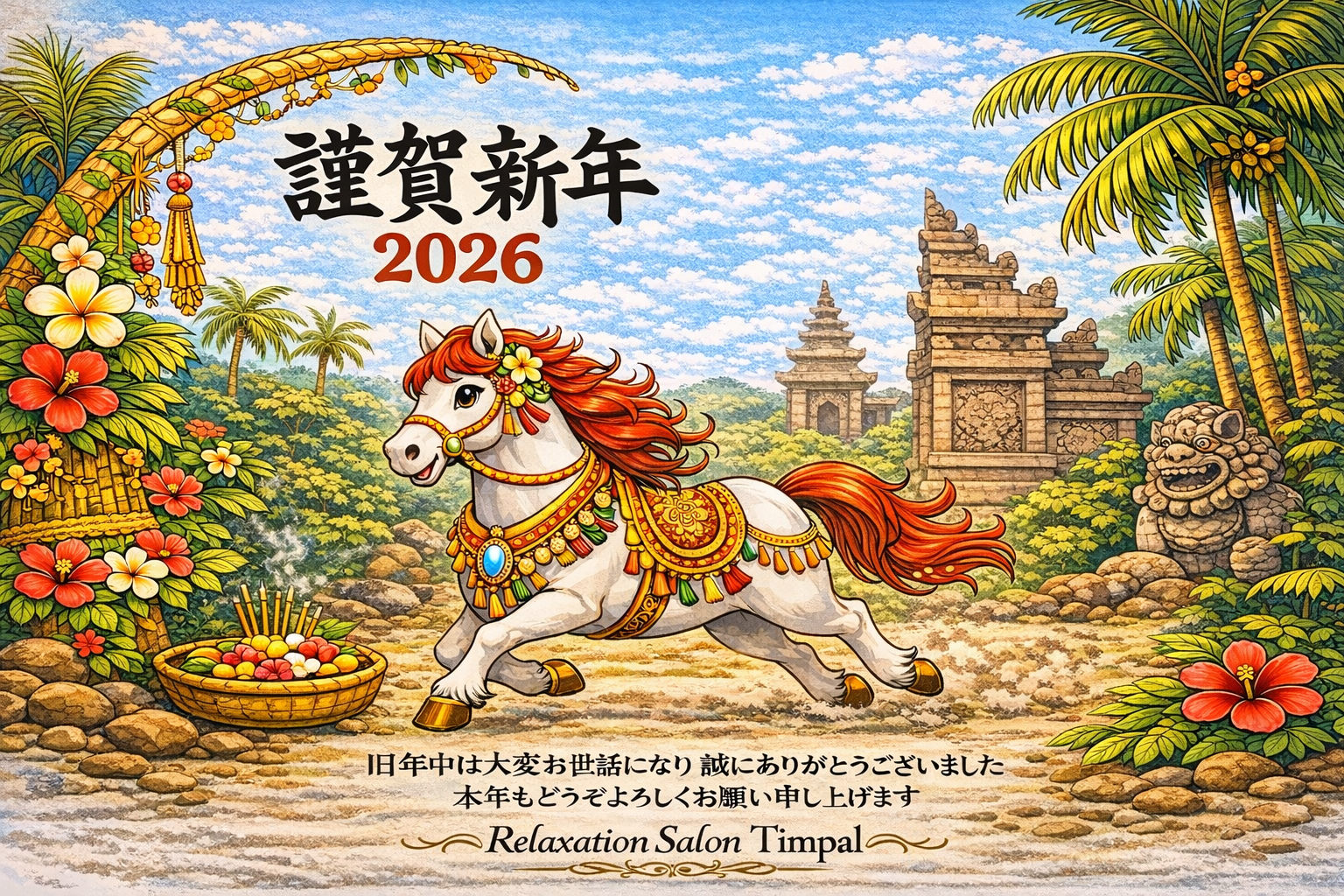 本年も、バリの癒しを感じていただける空間と、心身がほっとゆるむ施術を大切に、皆さまをお迎えいたします。